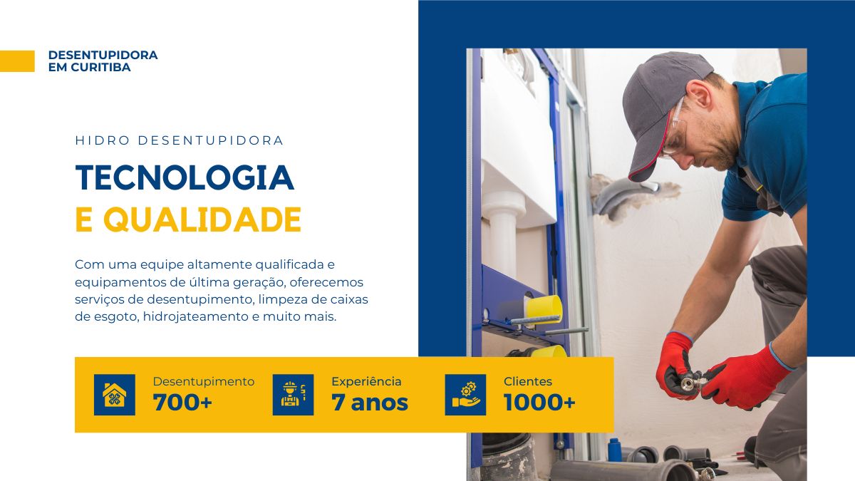 Somos a Desentupidora Hidro Curitiba, uma desentupidora de esgoto com sede em Curitiba. Estamos comprometidos em fornecer soluções eficientes e de alta qualidade para os nossos clientes. Com visita gratuita para orçamentos, garantimos um tempo de resposta rápido de apenas 30 minutos. Oferecemos pagamento facilitado em até 10x sem juros, além de boletos faturados para empresas com prazo de até 120 dias.